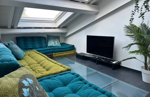 The interior spaces have been designed to offer maximum comfort. The welcoming living room, with comfortable poufs and a flat-screen TV, is perfect for relaxing after a day discovering the wonders of Florence. The modern and fully equipped kitchen has an oven, dishwasher and induction hob, making preparing meals pleasant and simple.